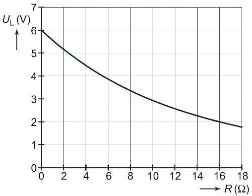 - Bij R = 6 Ω is I = 0,36 A en UL = 3,9 V.