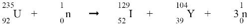De isotoop I-129 kan in een kerncentrale ontstaan bij splijting van een U-235 kern, waarbij ook enkele neutronen vrijkomen.