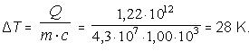 - Lucht heeft een soortelijke warmte van 1 kJ/kg K, dus met 28 kJ zal de lucht gemiddeld 28 graden per minuut stijgen.