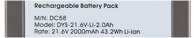 Dyson stofzuigers maken (nu nog) gebruik van Li-ion Kobalt accu’s. Dit is het typeplaatje van zo’n accu: