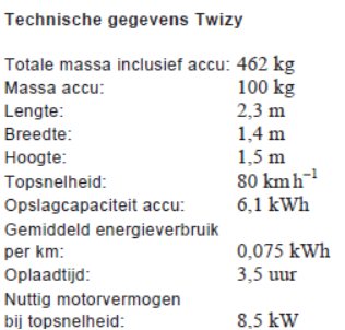 technische gegevens van de Twizy die bij de vragen gebruikt kunnen worden.