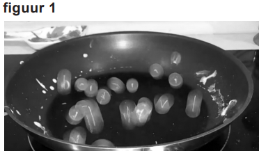 Op internet zijn verschillende filmpjes te vinden van hydrogelballetjes, die in een hete koekenpan hevig op en neer stuiteren. Zie figuur 1.