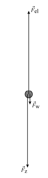 De zwaartekracht op de druppel is gelijk aan $F_{z}=\rho _{olie}\cdot V\cdot g$ . De opwaartse kracht is gelijk aan $F_{op}=\rho _{lucht}\cdot V\cdot g$ . De dichtheid van lucht is veel kleiner dan de dichtheid van de olie. (Dus de opwaartse kracht is verwaarloosbaar ten opzichte van de zwaartekracht.)