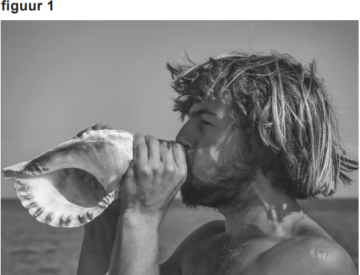 Wetenschappers hebben een schelp gevonden van 18 duizend jaar oud die vermoedelijk als blaasinstrument is gebruikt. Zie figuur 1.