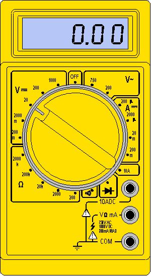 Hoe je hem precies gebruikt is natuurlijk van het model afhankelijk. Bijgevoegd is een plaatje van een redelijk standaard multimeter. Om hiermee de stroom te meten, zet je de draaiknop ergens in het Ampere-gebied (met de A). Voor de stroomsterkte moet je de multimeter in serie schakelen. Gebruik hiervoor de twee bovenste aansluitpunten, maar dat kan verschillen per multimeter!