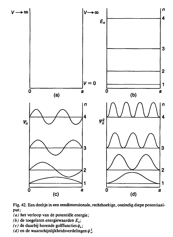 2. Deeltje-in-doosjemodel: In de uitleg van mijn boek wordt gezegd dat in een oneindig diep doosje de potentiële energie 0 is en het deeltje alleen kinetische energie heeft. Ook stelt het boek dat het deeltje is opgesloten als E_deeltje < E_pot. Ik snap niet helemaal hoe dit zit met de potentiële en kinetische energie van het deeltje in het doosje. Zou iemand dit kunnen uitleggen of mij kunnen verwijzen naar een site/video met duidelijke uitleg hierover?