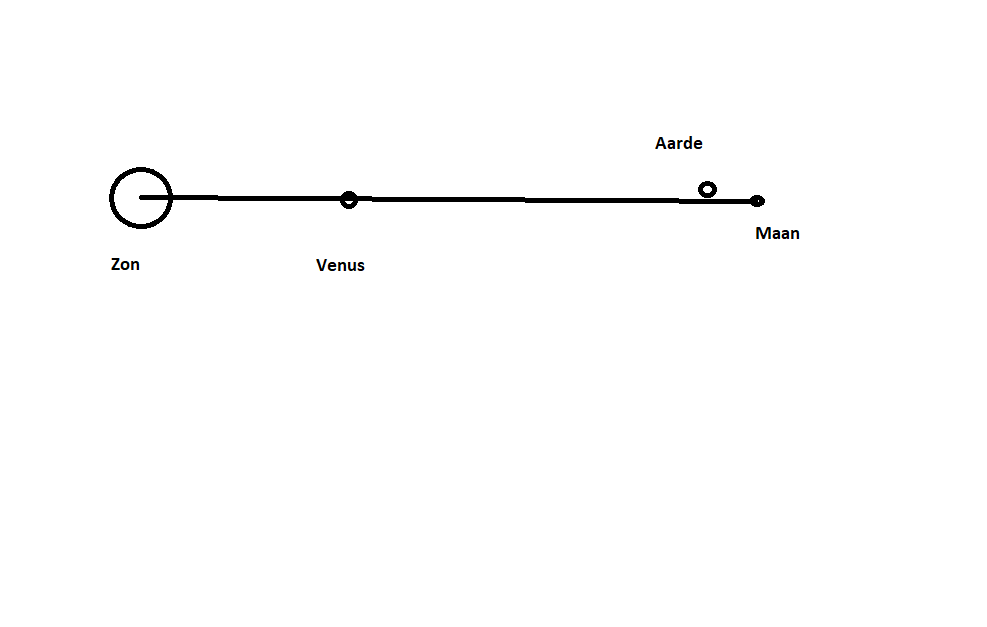 Heel, heel erg bedankt voor je antwoorden. Het plaatje is zeer verhelderend, Ja, het is me nu in elk geval wel duideljk, dat Venus qua afstand t.o.v. de zon dicht in de buurt van de aarde zou moeten liggen omdat de aarde, wanneer de zon, de aarde en de maan op een rechte lijn zouden liggen en de maan aan de buitenkant van de aarde, wel een slagschauduw geeft op de maan. Daarbij ga ik er maar even vanuit dat de aarde en Venus ongeveer even groot zijn.