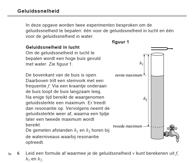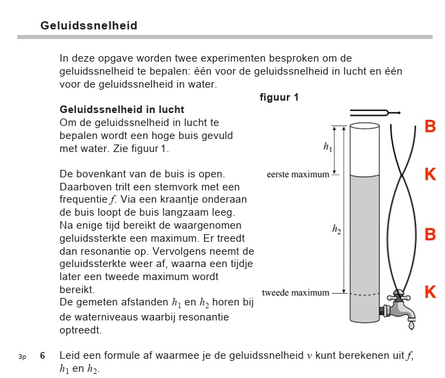 Ik heb een vraag over opgave 2 vraag 6. In de correctie voorschrift wordt aangegeven dat de afstanden tussen de resonantie 1/2 golflengte is, maar hoezo is dit zo? Want ikzie een vaste en een dichte uiteinde dus je zou denken dat het toch overeenkomt met 1/4 golflengte?