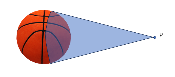 De rest uitrekenen is vooral wiskunde: rechthoekige driehoek met scherpe punt P, rechte hoek op verbinding P-bal middelpunt. ChatGPT kan het ongetwijfeld voorrekenen (wel controleren op onzin!).