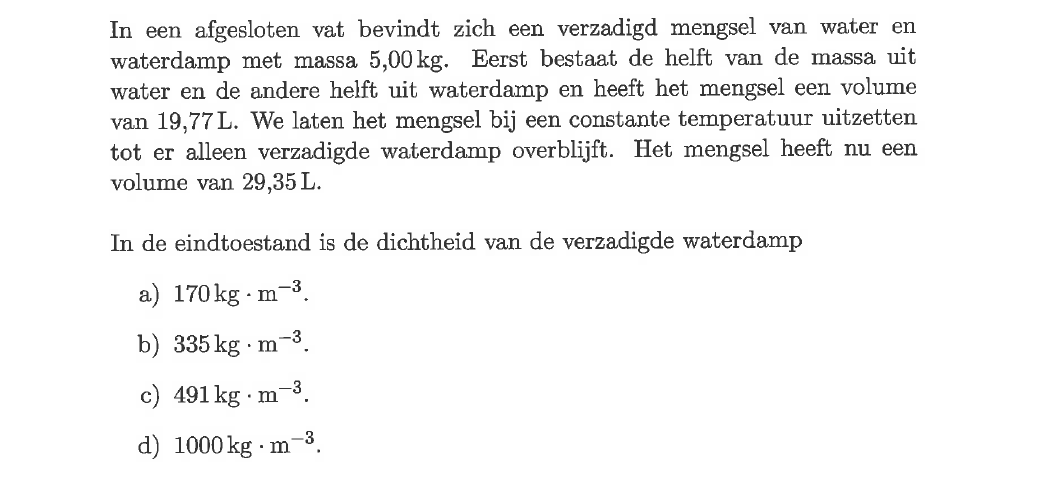 is de dichtheid van de verzadigde waterdamp in de eindtoestand de vraag?