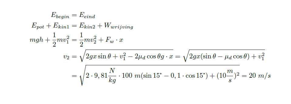Daarom zou ik op de plaats van $W_\text{wrijving}$ liever $Q$ schrijven. Dat is de positieve hoeveelheid warmte die door de wrijving wordt ontwikkeld.